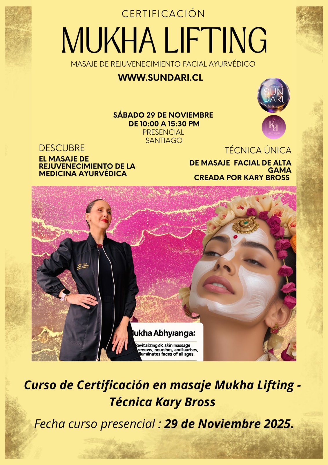 Certificacion presencial en Santiago- Sábado 29 de Noviembre, de 10:00 de la mañana a 15:30 de la tarde. Aprenderás a ser una experta en lifting tradicional Ayurvédico - Japonés- Técnica Certificada por Kary Bross-